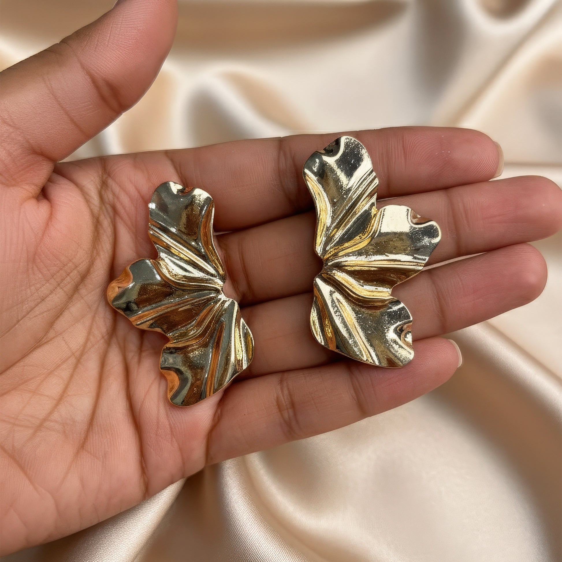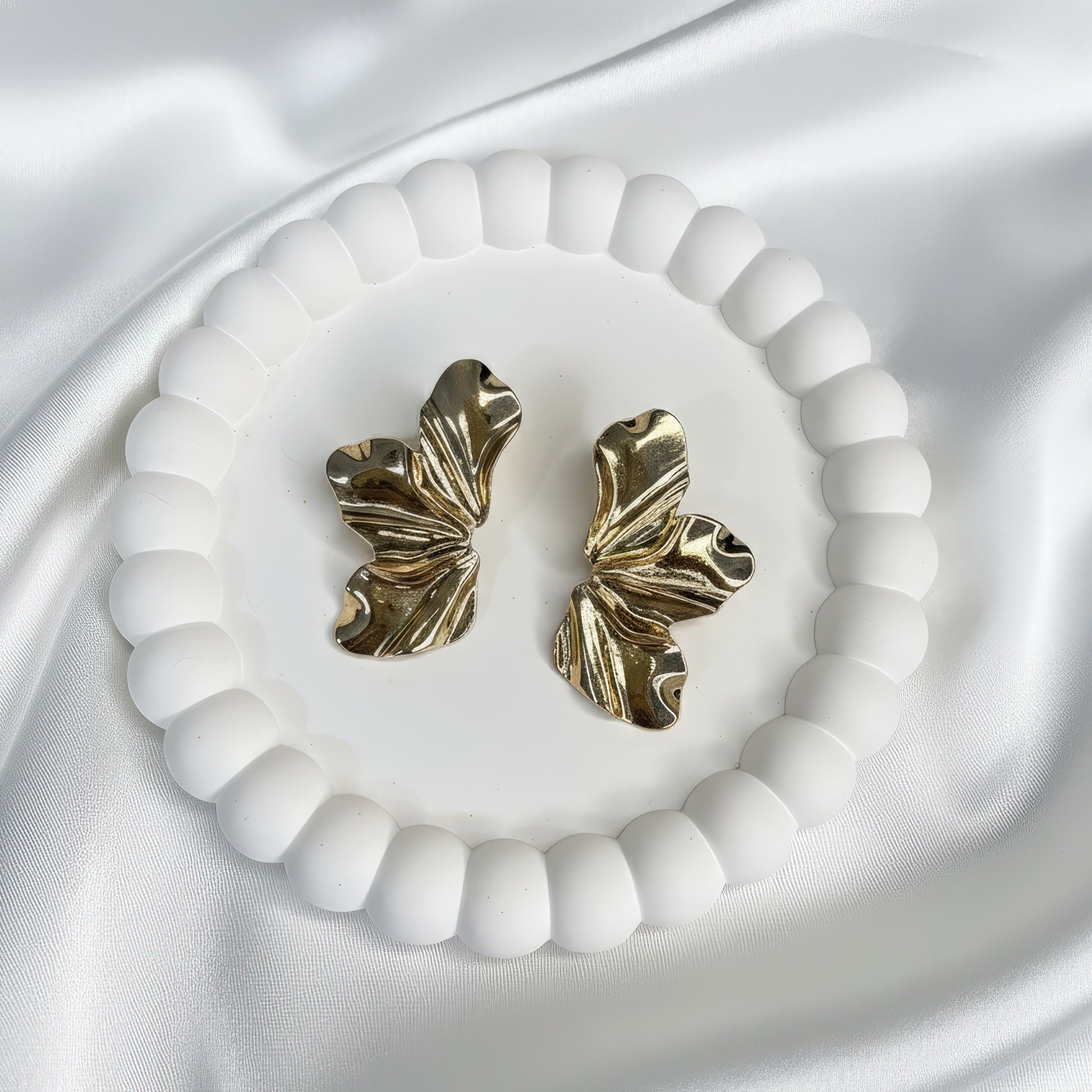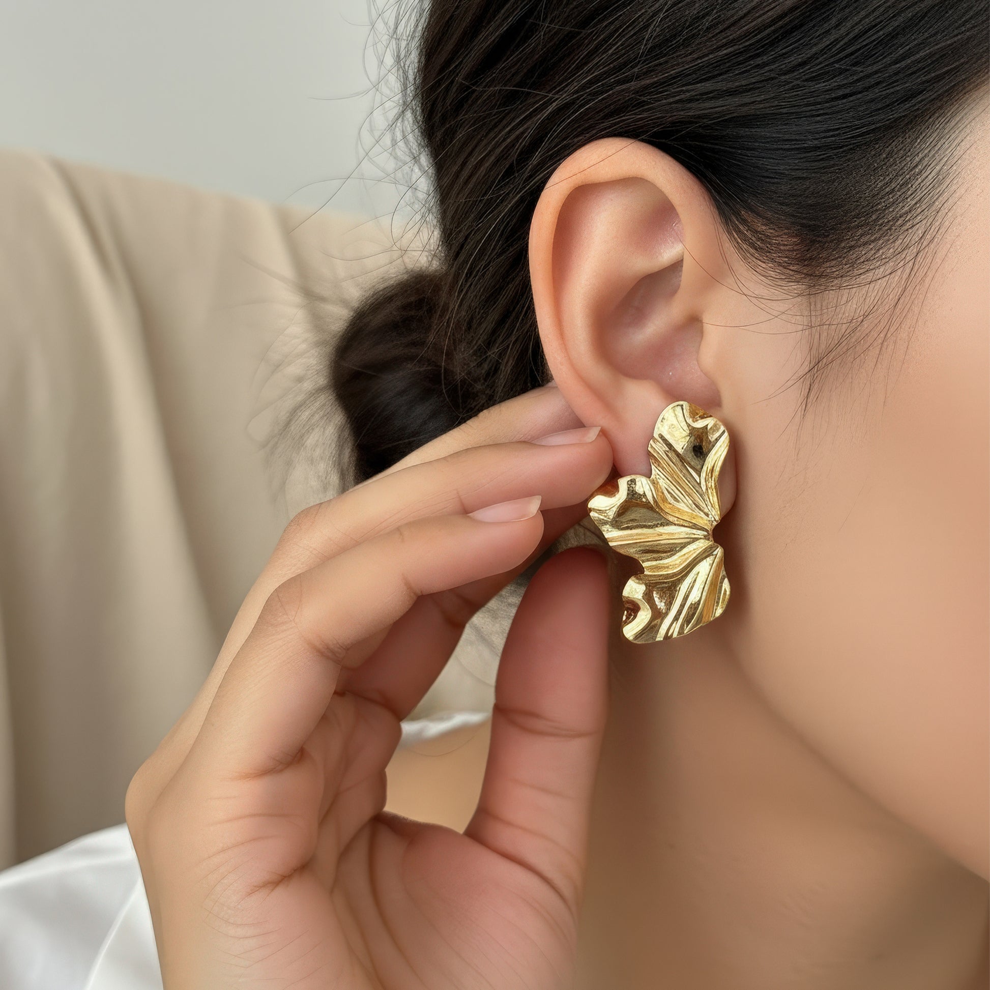 Sculpted with a gentle, flowing form, the Golden Drift Earrings bring an artful touch to your look. Their soft curves and rippled texture catch the light beautifully, creating a sense of effortless movement and grace. Bold yet wearable, they’re perfect for those who love statement pieces with timeless charm.